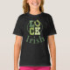 A cute modern-day take on the "luck of the Irish" St. Patrick's Day t-shirt. The text is "LUCK" and "Irish" in a fun green typography. Black background.
