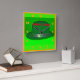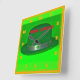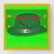 A Green Derby shot closeup with a silver hat band, with green clover's around it that's bright and colorful. That's on a Wall Clock.