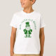 A fun design for celebrating St. Patrick's Day. This lucky leprechaun is wearing a green top hat with a four leaf clover, on it. The arched text read, Irish, Lucky and Blessed.