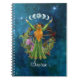 Beautiful watercolor illustrated notebook features moon goddess in emerald green gown with flaming red hair on celestial skies background. Customizable with script text in white