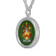 I chose gold plated so that the metal would not react with my skin oils and perspiration. But, I changed the necklace from the gold plated one to a sterling silver. My skin cells will tarnish the silver. But it will not look as bad if some portion of the gold plated necklace somehow became compromised. Zazzle did a find job turning the picture into a pendant for me. As you can see, the colors and the printing of the final product, match the preview. The picture I took is not very clear. But I am pleased with the product I received.