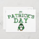 Cute Irish owl is featured, on this St. Patrick's Day postcard. Front of post card reads, "St. Patrick's Day" and back of postcard reads, "Get your Irish On, and have a Happy St. Pat's Day"! A great postcard to send family and friends for the holiday!