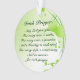 Christmas inspirational quote Irish ornament depicts a background of hearts and shamrocks and features an inspiring Irish Prayer, "May God give you, For every tear, a smile, For every care, a promise, And a blessing in each trial, For every sigh, a sweet song, And an answer for each prayer.". The back can be personalized with the details of your choice.-