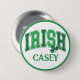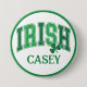 Show your Irish pride with this fun button that features the word "IRISH" in a curved retro font in distressed colors of light and dark green. Monogram name coordinates perfectly in a distressed green decorative font.
