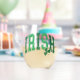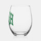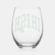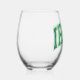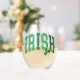 Show your Irish pride with this fun stemless wine glass that features the word "IRISH" in a curved varsity lettering retro script in distressed colors of light and dark green.