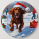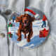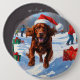 A beautiful Irish Red Setter runs joyfully through the snowy landscape, wearing a festive red Christmas hat. This vibrant winter scene highlights the breed’s silky red coat, energetic spirit, and affectionate nature while celebrating the warmth and magic of the holiday season. A lively design full of festive charm.