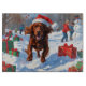 A beautiful Irish Red Setter runs joyfully through the snowy landscape, wearing a festive red Christmas hat. This vibrant winter scene highlights the breed’s silky red coat, energetic spirit, and affectionate nature while celebrating the warmth and magic of the holiday season. A lively design full of festive charm.