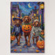 Adorable Irish Red Setters dressed in playful Halloween costumes carry pumpkin buckets while trick-or-treating under the moonlit sky. This festive design highlights the breed’s flowing red coat, elegant build, and lively personality, perfectly capturing the spooky yet fun atmosphere of Halloween night. A heartwarming celebration for dog lovers and Halloween fans alike.