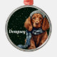 Fun holiday ornament features an Irish Setter pup with winter cap and scarf. Add a personalized touch with dog's name or other special message. Great gift idea for dog lovers!