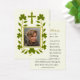 This dignified Catholic funeral memorial design features a bold green cross and an elegant shamrock vine motif, symbolizing the Holy Trinity and eternal life. A rectangular photo of your dearly departed is framed in golden embroidery, surrounded by graceful green shamrocks. The back includes a reverent Catholic prayer for the repose of the soul, invoking Our Lady and the Saints. A beautiful keepsake for funeral Masses or celebrations of life rooted in faith and Irish tradition.