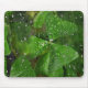 Close up of a shamrock leaves viewed through a window with raindrops.