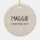 Lightweight, smooth, pure white ornament with nice sheen. Perfect size to be seen from across the room ... and to attract closer inspection! Price was great for ordering enough for the whole family! Clear, bold black design just as requested. Matches the order exactly. Just so nice!