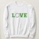 Lovers of Irish Gaelic sports will appreciate this fun sweatshirt featuring the word LOVE in green letters. The letter O has been replaced with a big sliotar (hurling ball).
