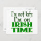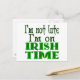 This funny Irish saying read I'm not late, I'm on Irish Time, with Celtic knotwork letters. Click Customize It to add your name or custom message.