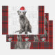 An adorable Irish Wolfhound dog is ready for the holiday season with his Santa hat. This cute Christmas dog is paired with a red and gray holiday plaid on this set of gift wrap for the dog lover.