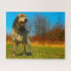 Irish Wolfhound. Jigsaws of Dogs, These Jigsaws are made of sturdy cardboard and mounted on chipboard, these puzzles are printed in vivid and full color. For hours of puzzle enjoyment, give a custom puzzle as a gift today! Size from: 11" x 14" (252 pieces) Up to: Super Size:20" x 30" (1014pieces) Includes beautiful gift box with puzzle image printed on lid. Sturdy cardboard stock, mounted on chipboard. Easy wipe-clean surface.