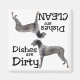 This magnet features an Irish Wolfhound standing on all 4 legs. Text reads: "Dishes are Dirty". Turn this magnet up-side-down and the same Irish Wolfhound is featured with this text: "Dishes are Clean". Great for that animal lover in your life! Looking to adopt a new best friend? Please visit petfinder.com to save the life of a shelter/rescue animal near you.