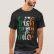 My 11 yo wore adult XL (5’7” 165#). The 8yo is small framed. She wore adult small and tied it in the back. Grandma wore adult large with long sleeve shirt underneath. Tall girl adult medium. Dark haired male adult large. Good quality dark Heather gray, Gildan brand shirt. -it was next up from basic choice and cost about $20 per shirt. Not too thick or thin. Washed and dried well, no major shrinkage. Not see-through. Can wear a bra under it fine. Screen print is just as shown and well done, front and back.