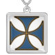 the iron cross, long used as a military and spiritual symbol, here in deep blue with a gold and black border