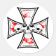 This Iron Cross has three skulls. All three skulls are inside the iron cross. The Iron Cross has alternating borders of black and white. This design is great for the biker and motorcycle enthusiast.