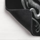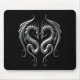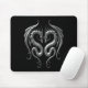 Two silver tribal dragons face each other in this aggressive symmetrical design. The winged serpents have the appearance of being cast out of solid iron which creates a stunning 3D look. The dragons sit on a pure black background creating a striking contrast. The metallic texture and deep silver color gives this mousepad a stylish look.