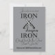 Iron sharpens Iron with crossing knives Christian Men's Retreat Invitations. Simple modern typography. Proverbs 27:17 in the King James Version of the Bible says, "Iron sharpeneth iron; so a man sharpeneth the countenance of his friend". KJV scripture verse. Design also available on a t-shirt and accessories. Add your Church Name/Venue or City/Date of Event/Website or RSVP info.