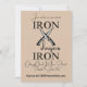 Iron sharpens Iron with crossing knives Christian Men's Retreat Invitations. Simple modern typography. Proverbs 27:17 in the King James Version of the Bible says, "Iron sharpeneth iron; so a man sharpeneth the countenance of his friend". KJV scripture verse. Design also available on a t-shirt and accessories. Add your Church Name/Venue or City/Date of Event/Website or RSVP info.