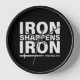 The Iron Sharpens Iron round wall clock, features Proverbs 27:17 in bold white font on a sleek black background. This 10-inch round clock is framed in premium black wood, adding a touch of strength and inspiration to any room. Perfect for game rooms, man caves, offices, or gyms, this statement timepiece blends faith with style.