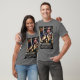My 11 yo wore adult XL (5’7” 165#). The 8yo is small framed. She wore adult small and tied it in the back. Grandma wore adult large with long sleeve shirt underneath. Tall girl adult medium. Dark haired male adult large. Good quality dark Heather gray, Gildan brand shirt. -it was next up from basic choice and cost about $20 per shirt. Not too thick or thin. Washed and dried well, no major shrinkage. Not see-through. Can wear a bra under it fine. Screen print is just as shown and well done, front and back.