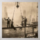 This fun Ironworkers Lunch At The 32 Floor Poster shows how careful but casual these New York iron workers are working at great heights.