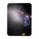 The irregular galaxy NGC 4485, located 25 million light-years away in the northern constellation Canes Venatici. The right side of the galaxy is ablaze with star formation, shown in the plethora of young blue stars and star-incubating pinkish nebulas. The left side contains hints of the galaxy's previous spiral structure, which, at one time, was undergoing normal galactic evolution. The larger culprit galaxy, NGC 4490, is off the bottom of the frame. The two galaxies sideswiped each other millions of years ago and are now 24,000 light-years apart. The gravitational tug-of-war between them created rippling patches of higher-density gas and dust within both galaxies. This activity triggered a flurry of star formation.