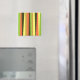 An irregular vertical striped design in green, orange, pale yellow, gold ochre and raw umber, each with a subtle paper like texture effect.