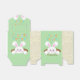 This adorable white bunny is peaking out to see if Easter is here. The front and back panels show the Easter Bunny. Above there are banners that read "HAPPY EASTER". The two side panels are beige with a floral pattern.