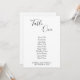 Designed to match our modern Isabella wedding collection, this simple table seating chart features whimsical, black calligraphy script with the words "table one" at the top followed by the names of the guests at that table written in elegant serif typography. At the bottom are your names and wedding date. You can easily customize the text using the template. Be sure to browse the other matching items in the collection to create a chic, cohesive look. If you need help customizing this sign or would like me to create other matching products, please contact me at admin@albamarie.com. I'd be happy to help!