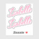 Isabelle name in cursive script font in pretty pink x2. Two copies of name.