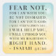 "Fear not, for I am with you; be not dismayed, for I am your God; I will strengthen you, I will help you, I will uphold you with my righteous right hand. - Isaiah 41:10" bible quote.