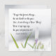 Flat greeting card with inspirational quote scripture depicts a simple nature photograph with an early spring Crocus flower bursting through the winter snow. It features an encouraging Bible Verse Isaiah 43:18-19, "Forget the former things; do not dwell on the past. See, I am doing a NEW THING! Now it springs up; do you not perceive it?" The greeting, prayer can be personalized or deleted for a hand written message.