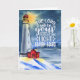 Inspirational quote scripture greeting card depicts a watercolor lighthouse with the light shining through the blue snow filled night sky. It features a portion of Bible Verse Isaiah 60:20, "The Lord will be your everlasting light." *