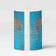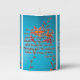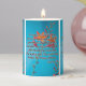 This pillar candle showcases a design that features a Charm print font with black letters gray outline displaying the "Isaiah 9:6" KJV bible scripture verse over this picture of a colorful flowers with multiple colors placed over a sky blue background in this faith based theme. This verse is referencing the Book Of Isaiah 9th chapter showing the 6th verse in this bible scripture quote theme from the King James bible. The candle is covered with a beautiful full-color wrap hand poured, individually designed made with high grade American paraffin & beeswax and, burns approximately 40 hours made in the USA.