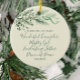 Personalize this unique simple stylish green on cream Christmas ceramic ornament with your family name. Isaiah 9:6 written in modern elegant typography is on one side and the family name on the other side. "Wonderful Counselor, Mighty God, Everlasting Father, Prince of Peace" in evergreen sage green script. Customize the text with your own words or leave the words "Merry Christmas from the" if desired. I created this one-of-a-kind hand drawn elegant evergreen toned pine branch and berries on a off white background. The contemporary Christian faith design is in a natural pine toned gradient. It is a beautiful neutral green and white Inspirational Bible Verse for stylish home holiday decoration with a personal message. Be sure to add your family name on the back side of this religious scripture. I have added this unique botanical design to other lovely personalized Christmas or holiday gifts in this collection.