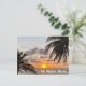 Postcard of Isla Mujeres sunset beach scene with palm trees