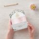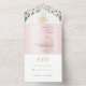 A gorgeous magnolia flora is the basis of this elegant pink all in one Wedding invitation featuring a gold Bismillah.