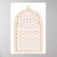 This elegant wall print showcases a traditional Islamic geometric pattern composed of interlocking hexagonal stars, framed within a pointed horseshoe arch reminiscent of mosque architecture. The light brown design on a white background highlights the mathematical precision and cultural artistry of Islamic design. Perfect for prayer spaces, minimalist interiors, or educational decor, this piece celebrates symmetry, heritage, and timeless beauty.