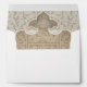 This exquisite envelope set is the perfect outer garment for your wedding invitations, featuring a lace-effect interior that embodies the essence of Islamic art. The delicate pattern, printed in subtle shades of cream and ivory, casts a vision of elegance as soon as your guests unveil the envelope. The exterior, equally elegant, carries the names and address in a classic typeface, bordered by a strip of matching lace-effect design. This set is a prelude to the splendor of your wedding day, promising an event wrapped in beauty and grace.