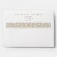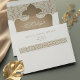 This exquisite envelope set is the perfect outer garment for your wedding invitations, featuring a lace-effect interior that embodies the essence of Islamic art. The delicate pattern, printed in subtle shades of cream and ivory, casts a vision of elegance as soon as your guests unveil the envelope. The exterior, equally elegant, carries the names and address in a classic typeface, bordered by a strip of matching lace-effect design. This set is a prelude to the splendor of your wedding day, promising an event wrapped in beauty and grace.