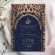 Islamic Navy Blue Traditional Mihrab Arabesque Wedding Invitation