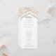Invite your guests to witness the beautiful traditions of your wedding day with this sophisticated ceremony program card. It elegantly details the sequence of events and introduces the wedding party in script that mirrors the arching lines of the Islamic motifs adorning the card's edges. The intricate design, in hues of cream and taupe, frames the program, while the chevron columns add a touch of modernity. This card is a perfect guide for guests to follow the ceremonial proceedings, from the Maghrib prayer to the Rukhsati, making it an integral part of your Islamic nuptials.