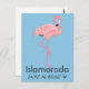 Islamorada Florida Keys flamingo postcard with latitude and longitude map coordinates of the town in art deco lettering. A pink flamingo posed on one leg against a turquoise teal blue background makes this perfect for anyone who loves the Florida Keys