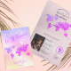 Glitter and Girly World Map Invitation Birthday Destination, like passport. Pink glitter details for the beach party