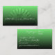 Customized business cards that feature a silhouette of 2 palm trees on an island with waves along the bottom. The background is a light green fading into black. These customized business cards would be perfect for businesses by the beach- surf shops, beach clothing stores, restaurant and pubs. Make sure to customize all text fields with your favorite font style and colors.